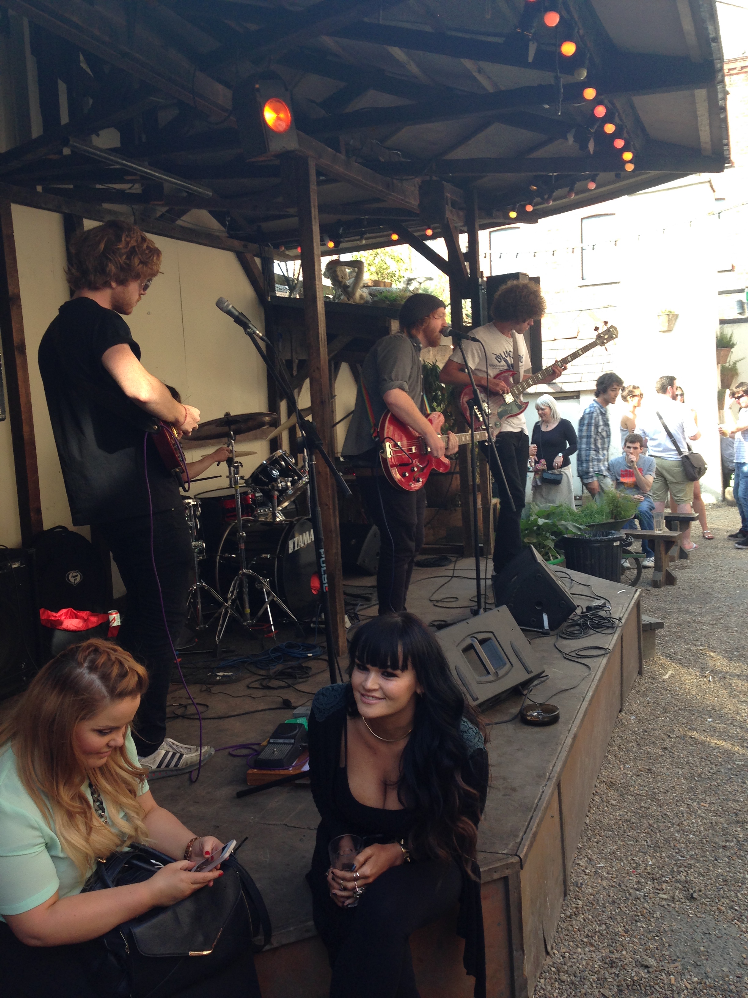 So, indoors we went and beers (with fruit!?) and spec sorted, we readied ourselves for three more bands. Firstly, and seemingly playing only their second gig, it was Ultimate Painting, who really looked the part with their twin Gretsch line-up, floppy fringed bassist and a full set of drainpipes. They could play a bit too. This is perhaps unsurprising when we learn that it’s the Mazes’ Jack Cooper and James Hoare from Veronica Falls up on stage.