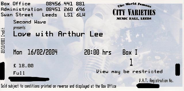 Here are some images of when Kicker got to see Arthur Lee and his hats, and a recommended book should you require more insight than you will find on this podcast.