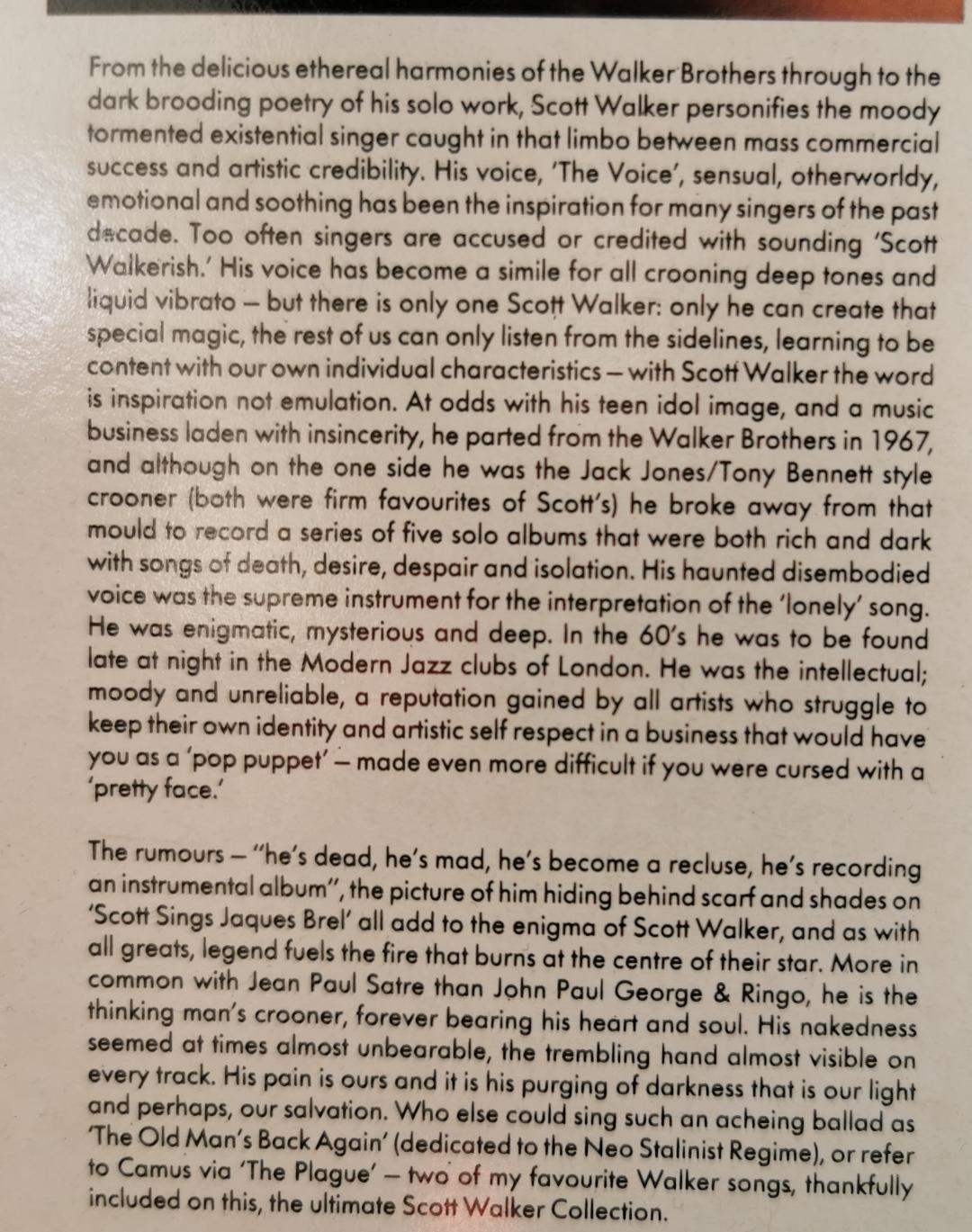 And here is a playlist of Kicker’s favourite Scott Walker tracks: